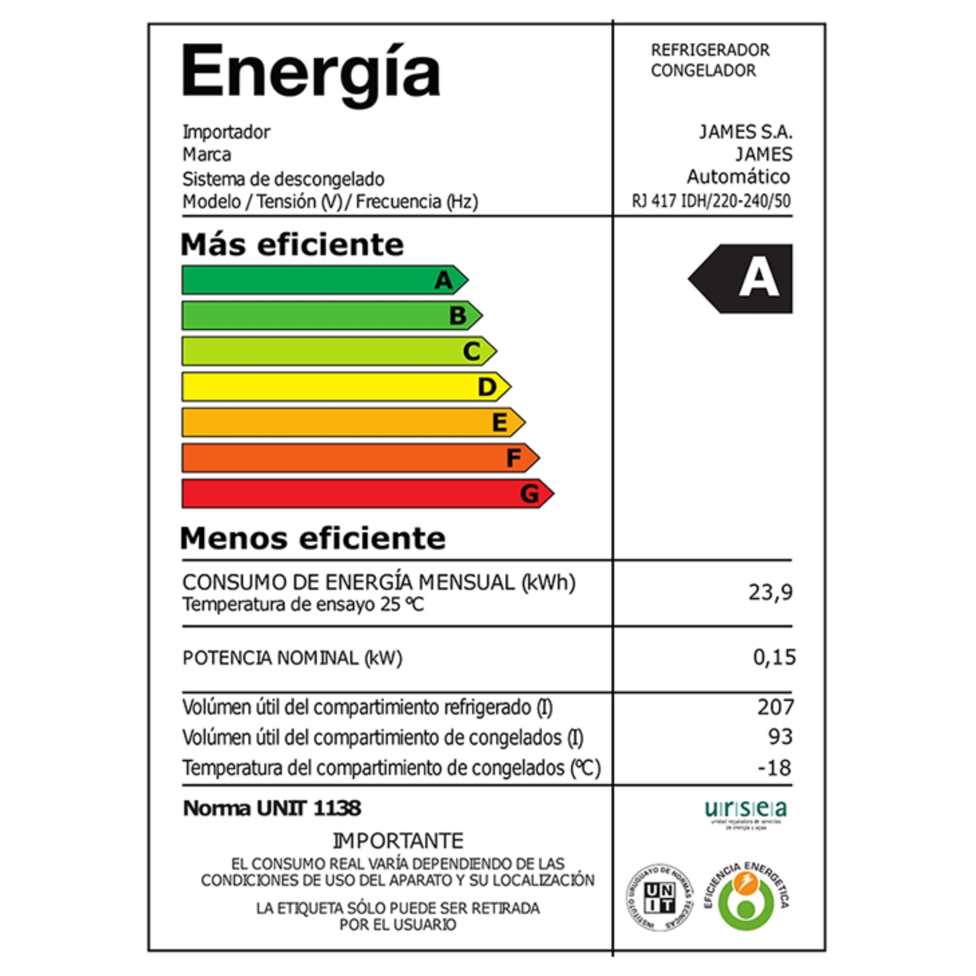 Refrigerador: 207 L