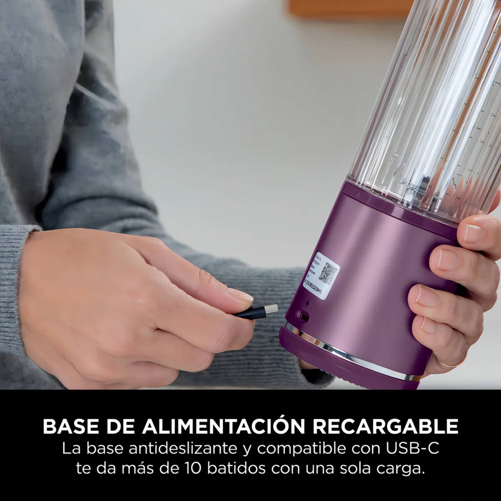 BATERÍA DE LARGA DURACIÓN: Base USB-C recargable que alcanza más de 10 batidos con una sola carga. Cable de carga USB-C